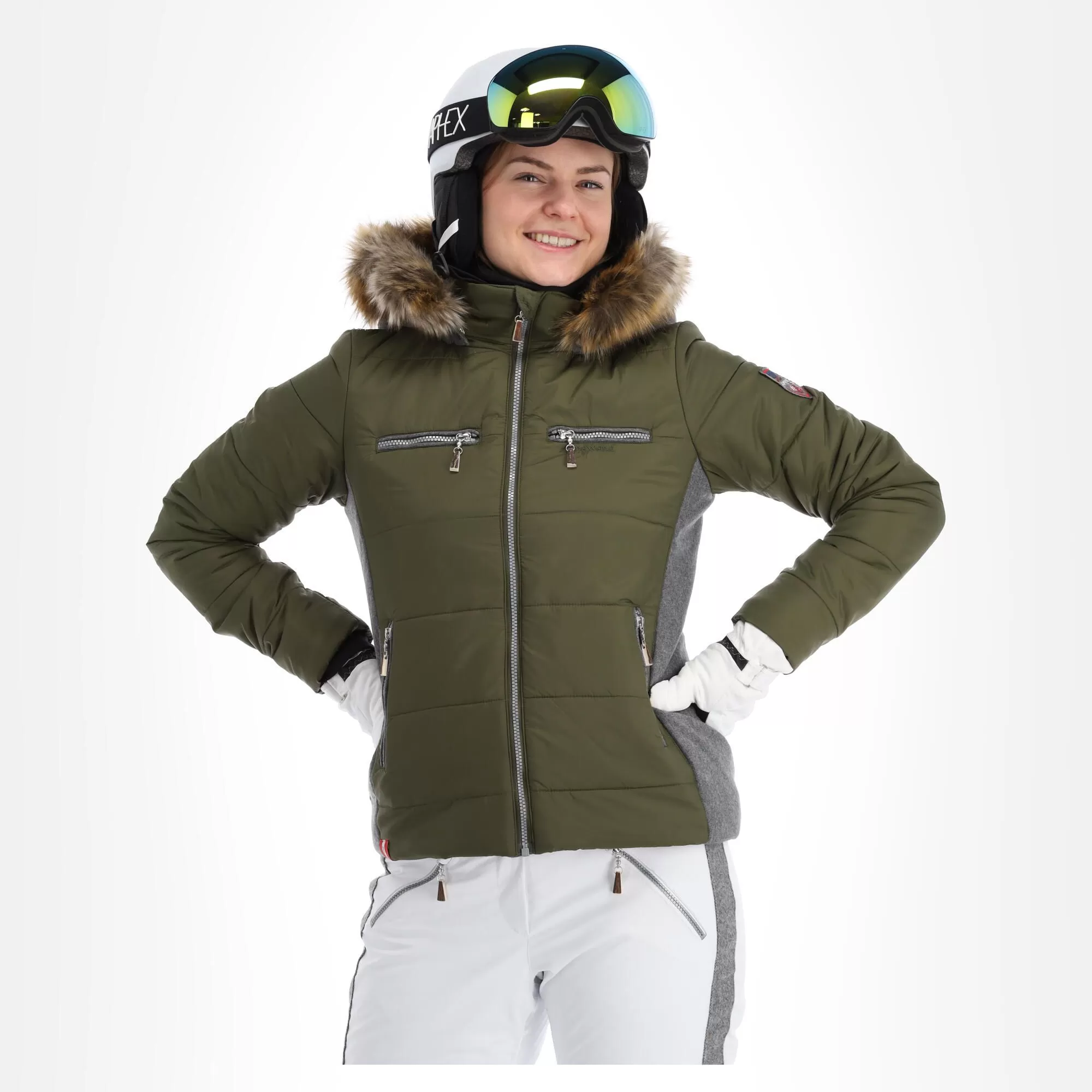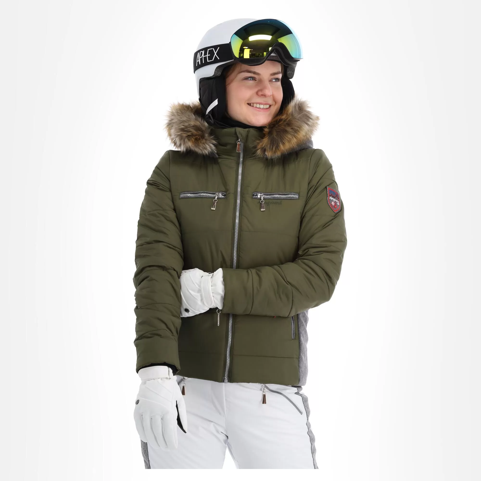 Almgwand, Stongerhohe Ski Jacket Women Olive Green, Grey